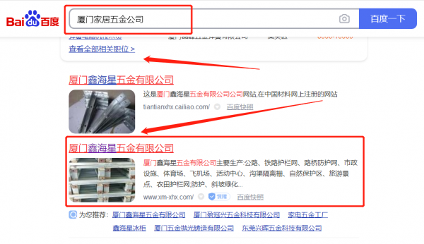 我們公司與廈門鑫*星五金有限公司合作中,對這個公司所經營的五金家居這個行業提供了SEO優化,與該公司的合作,更多的客戶讓我們公司為其提供關鍵詞搜索排名,通過每一次合作,我們公司不斷完善自己,同時希望合作伙伴在經營的路上越來越好。