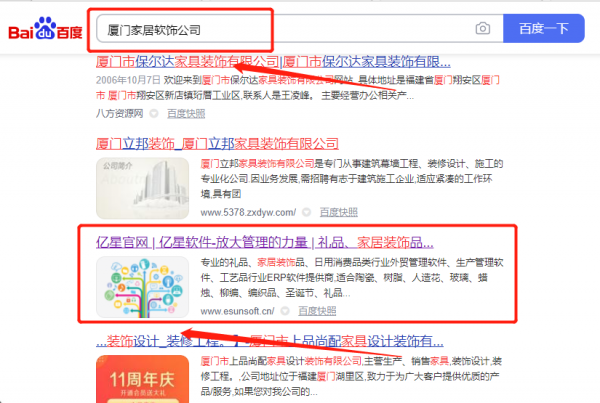我們公司與廈門*星軟件有限公司合作中,對這個公司所經營的家居軟飾這個行業提供了關鍵詞推廣,與該公司的合作,更多的客戶讓我們公司為其提供SEO優化,通過每一次合作,我們公司不斷完善自己,同時希望合作伙伴在經營的路上越來越好。