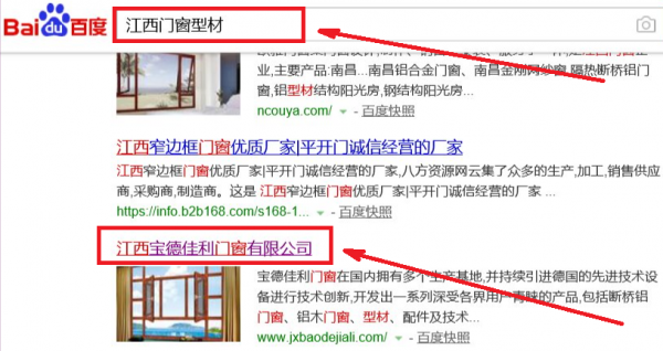 我們公司與江西寶德佳利門窗有限公司合作中,對這個公司所經營的門窗型材這個行業提供了百度快照排名,與該公司的合作,更多的客戶讓我們公司為其提供百度快照排名,通過每一次合作,我們公司不斷完善自己,同時希望合作伙伴在經營的路上越來越好。