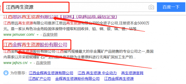 江西金輝再生資源股份有限公司跟本公司簽訂快速排名合同