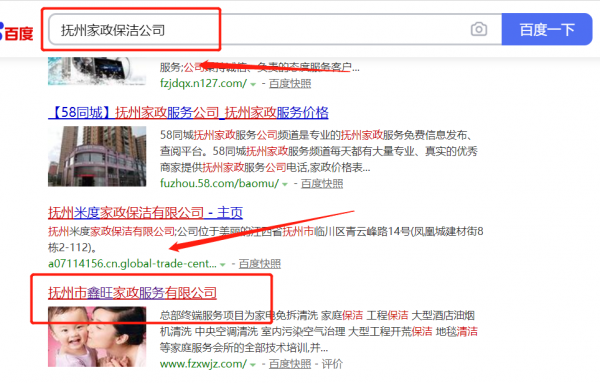 撫州市*旺家政服務(wù)有限公司選用我司企業(yè)家政保潔的網(wǎng)站優(yōu)化產(chǎn)品,其SEO關(guān)鍵詞有家政保潔。通過(guò)反饋站點(diǎn)的客戶體驗(yàn)給搜索引擎,提升網(wǎng)站的關(guān)注度和友好度,從而達(dá)到關(guān)鍵字排名迅速提升的效果。多年上萬(wàn)關(guān)鍵詞排名解決方案,且支持技術(shù)、售后有保障。撫州市*旺家政服務(wù)有限公司成立于2017年,是經(jīng)撫州市市場(chǎng)監(jiān)督管理局審核的有資質(zhì)的公司,其統(tǒng)一社會(huì)信用代碼:91361000M**6UJKM0N。公司地址:江西省撫州市臨川區(qū)贛東大道(原體育館內(nèi))奧林假日1幢3-1303室。