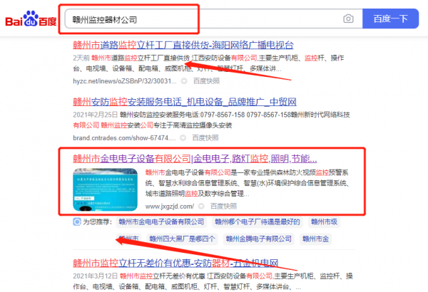 贛州市*電電子設備有限公司選用我司企業監控器材的網站優化產品,其SEO關鍵詞有監控器材。無論你關鍵詞是在20名內、30名內、還是50名內。我們都可以在最短時間優化至搜索引擎的首頁。提供后臺管理,排名查詢、關鍵詞管理、財務扣費一目了然,一鍵操作。贛州市*電電子設備有限公司成立于2012年,是經贛州市市場監督管理局審核的有資質的公司,其統一社會信用代碼:91360732**9237739N。公司地址:江西省贛州市興國縣經濟開發區南區。