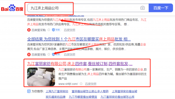 九江富*家紡有限公司選用我司企業床上用品的網站優化產品,其SEO關鍵詞有床上用品。通過技術手段優化網站,可以實現網站在搜索引擎中關鍵詞排名提升,獲得更多品牌展示機會,讓更多目標客戶了解企業。九江富*家紡有限公司成立于2016年,是經九江市市場監督管理局審核的有資質的公司,其統一社會信用代碼:91360426M**5K41G40。公司地址:江西省九江市德安縣寶塔工業園西區。