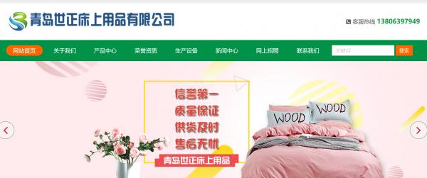 青島世正床上用品有限公司選用我司企業的網站設計優化產品,其seo關鍵詞為床上用品,.鎖定海外排名,覆蓋谷歌,雅虎,必應等海外主流搜索引擎,搶占海外市場, 網站打開速度快,用戶體驗好,風格多樣化,用戶互動性高,增強用戶黏著度, 青島世正床上用品有限公司成立于2007年,是經青島市市場監督管理局審核的有資質的公司,其統一社會信用代碼:9137028279750378XH。公司地址:山東省青島市即墨區泰山一路南段西興家疃村