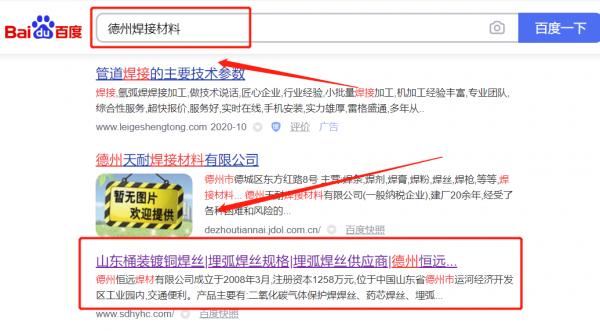 德州恒*焊材有限公司新站排名案例欣賞