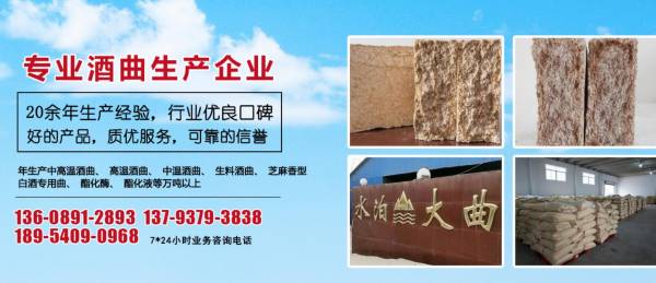 梁山水*大曲有限公司成立于1987年2月,是一家專注生產(chǎn)酒曲的知名企業(yè),公司坐落于水泊梁山腳下壽張集開發(fā)區(qū),年生產(chǎn)能萬噸以上,主要產(chǎn)品有:清香曲、濃香曲、芝麻香曲、醬香曲以及各種酶制劑。公司現(xiàn)有職工人數(shù)136名,其中技術(shù)人員16名。近年來我公司與江南大學(xué)合作開發(fā),將傳統(tǒng)制曲工藝與現(xiàn)代科學(xué)技術(shù)相結(jié)合,在微生物方面與工藝質(zhì)量檢測進行了科學(xué)研究,大大提高了酒曲中微生物的質(zhì)量,使我公司產(chǎn)品在各家酒廠生產(chǎn)使用中取得了良好的經(jīng)濟效益。