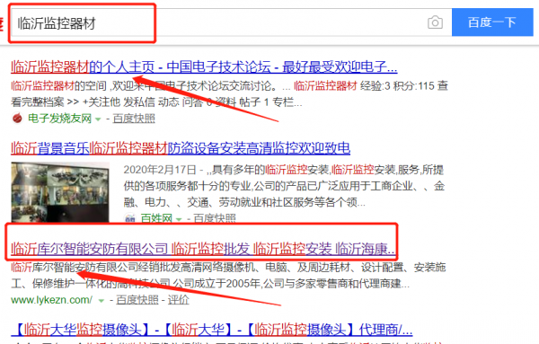 我們公司與臨沂庫爾智能安防有限公司合作中,對這個公司所經營的監控器材這個行業提供了百度快照排名,與該公司的合作,更多的客戶讓我們公司為其提供百度快照排名,通過每一次合作,我們公司不斷完善自己,同時希望合作伙伴在經營的路上越來越好。