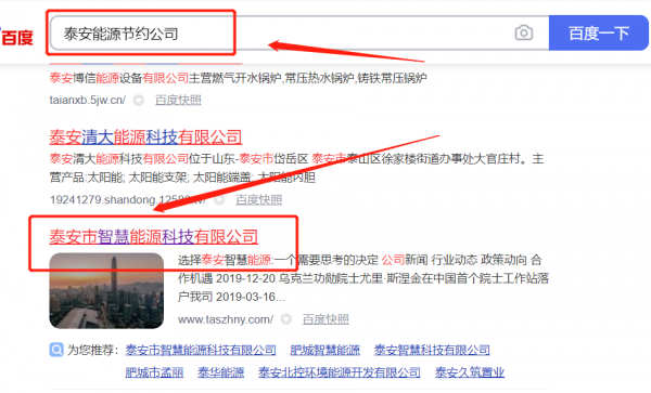 泰安市*慧能源科技有限公司百度關(guān)鍵詞排名排名效果展示