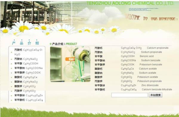 我們是一家集開發(fā)、生產(chǎn)、銷售于一體的食品和飼料添加劑企業(yè),在中國是苯甲酸鹽和丙酸鹽的專業(yè)供應(yīng)商,公司有生產(chǎn)工業(yè)級(jí)和食品級(jí):10000噸苯甲酸、6000噸苯甲酸鈉、2000噸苯甲酸鉀;食品級(jí)和飼料級(jí):5000噸丙酸鈣、2000噸丙酸鈉、3000噸醋酸鈣的生產(chǎn)能力,另外,我們還生產(chǎn)苯甲酸鈣和苯甲酸鋅。公司90%的產(chǎn)品可供出口,我們的產(chǎn)品遍及世界各地。
