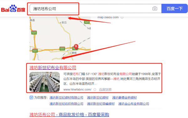 濰坊*世紀布業有限公司百度關鍵詞排名案例欣賞