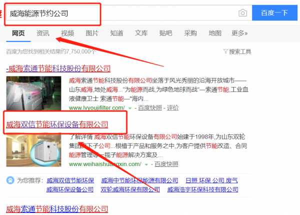 威海雙信節能環保設備有限公司與我司簽下百度霸屏協議