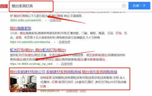 我們公司與煙臺家都建材有限公司合作中,對這個公司所經營的家具燈具這個行業提供了SEO網站優化,與該公司的合作,更多的客戶讓我們公司為其提供SEO優化,通過每一次合作,我們公司不斷完善自己,同時希望合作伙伴在經營的路上越來越好。