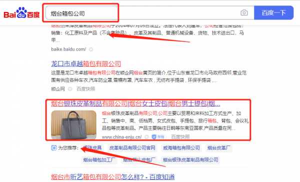煙臺銀*皮革制品有限公司網(wǎng)絡(luò)推廣快上詞效果展示