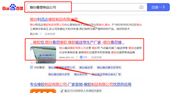 煙臺桑*橡膠有限公司網絡推廣快上詞效果展示