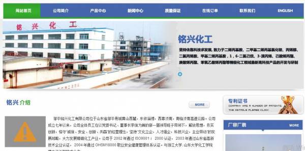 鄒平*興化工有限公司位于山東省鄒平縣城黃山西麓,東依淄博,西靠濟(jì)南,南臨濟(jì)青高速公路。公司成立七年以來,公司全體員工在以黨委書記、董事長李信為首的新一屆領(lǐng)導(dǎo)班子帶領(lǐng)下,解放思想,務(wù)實(shí)創(chuàng)新,恪守“誠信、安全、創(chuàng)新、共贏”的經(jīng)營理念,堅持“文化立企,人才強(qiáng)企,科技興企,主業(yè)帶動”的發(fā)展戰(zhàn)略,大力發(fā)展精細(xì)化工產(chǎn)業(yè)。公司于 2002 年通過 ISO9001 : 2000 認(rèn)證, 2003 年通過山東省高新技術(shù)企業(yè)認(rèn)證, 2004 年通過 OHSM18000 職業(yè)安全健康管理體系認(rèn)證。與浙江大學(xué), 山東大學(xué)化工學(xué)院建立了長期技術(shù)合作關(guān)系, 成為浙江大學(xué)聯(lián)合化學(xué)反應(yīng)工程研究所中試基地, 不斷為客戶提供最新的精細(xì)化工產(chǎn)品。