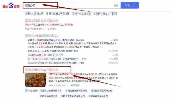 洛陽市統(tǒng)*食品有限公司網(wǎng)站優(yōu)化排名效果展示