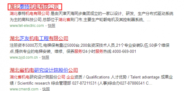 我們公司與泰特機電公司合作中,對這個公司所經營的機電這個行業的百度快照排名積累了豐富的經驗;同時在該行業的百度快照排名等多元化的領域中也有很多的成功的案例;但愿通過我們的合作,能夠幫助到合作伙伴在同行業中遙遙領先。我們公司不僅提供SEO優化推廣,百度快照排名,搜索引擎優化推廣,快速排名,關鍵詞搜索排名,SEO網站優化,網站建設制作設計,而且有專業的配備專業SEO優化團隊,幫助企業定位,鎖定目標用戶,在360、百度等知名搜索引擎享搶占互聯市場。我司誠摯為你服務,歡迎你的到來。