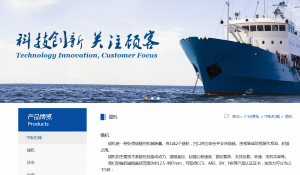 公司目前甲板機械主要生產和銷售各種船舶和海洋平臺的錨機、絞車、絞盤以及船用起重機。產品規格:錨機φ12.5~φ87mm,系泊絞車和工程絞車2.5kN~1000kN,起重機2kNm~800kNm,年生產能力300船套,已形成專業化、系列化、規模化和成套化的生產體系。現擁有科研生產設備132臺套,計量器具25臺(套)。其中大型機器設備20臺套,試驗能力1500kN的錨絞機試驗臺一個、200kNm吊機試驗臺一個、800kNm吊機試驗臺一個均達到國內先進水平。