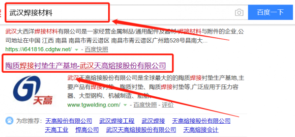 我們公司與武漢天高熔接股份有限公司合作中,對這個公司所經(jīng)營的焊接材料這個行業(yè)提供了SEO推廣,與該公司的合作,更多的客戶讓我們公司為其提供SEO推廣,通過每一次合作,我們公司不斷完善自己,同時希望合作伙伴在經(jīng)營的路上越來越好。