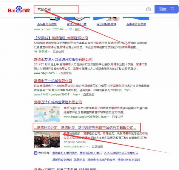 常德市*信拍賣有限公司百度快照排名