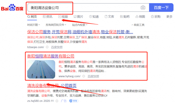 衡陽*翔清潔服務有限公司優化排名排名效果展示