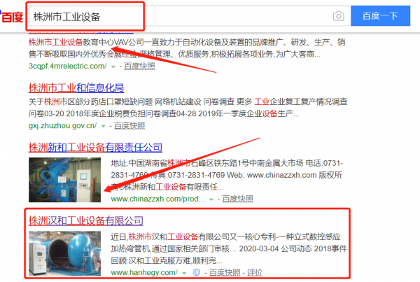 我們公司與株洲漢和工業(yè)設(shè)備有限公司合作中,對這個公司所經(jīng)營的工業(yè)設(shè)備這個行業(yè)提供了關(guān)鍵詞搜索排名,與該公司的合作,更多的客戶讓我們公司為其提供關(guān)鍵詞搜索排名,通過每一次合作,我們公司不斷完善自己,同時希望合作伙伴在經(jīng)營的路上越來越好。